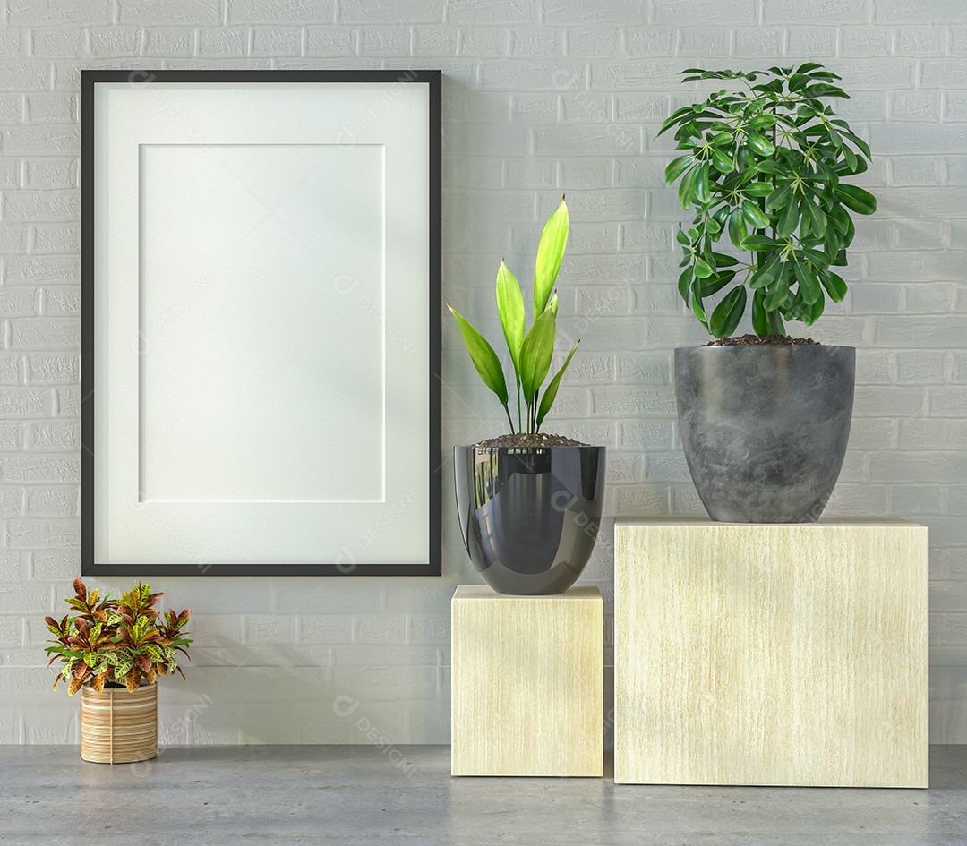 Moldura de foto de maquete de ilustração 3D na bela parede na sala ...