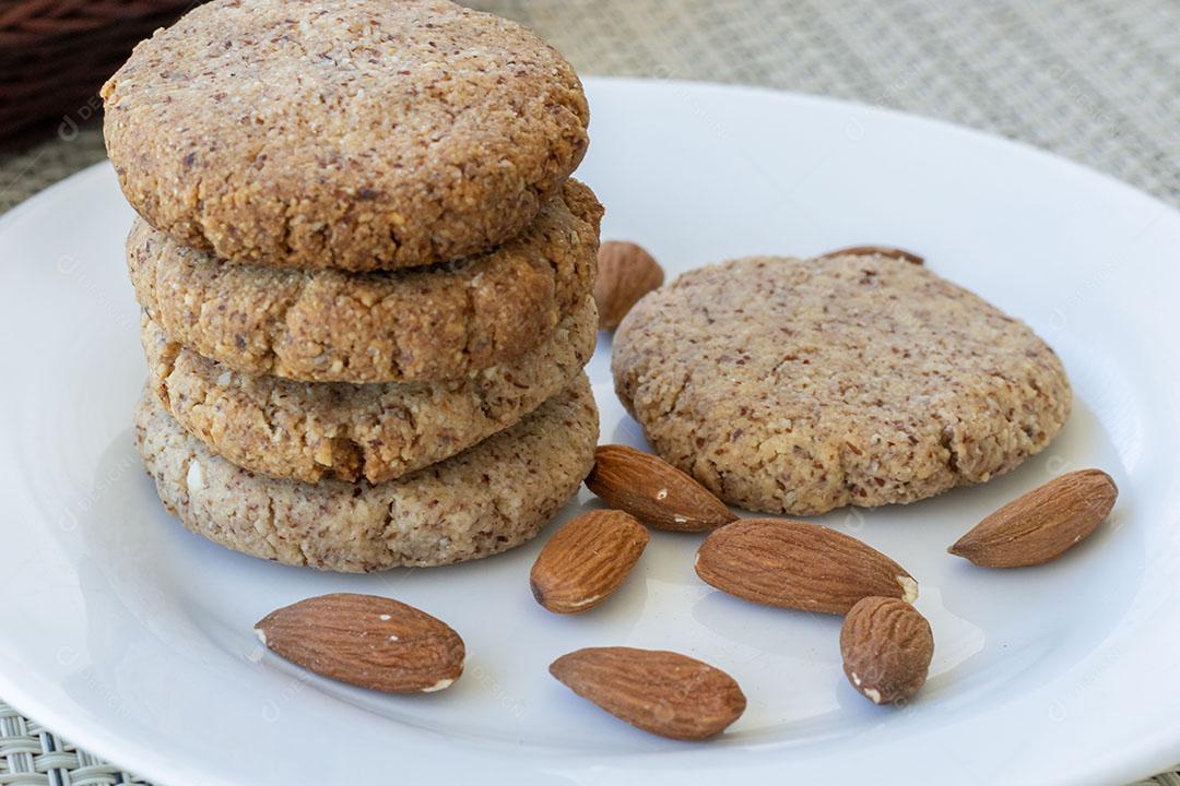 Biscoitos de Amêndoa Caseiros Empilhados em um Prato JPG