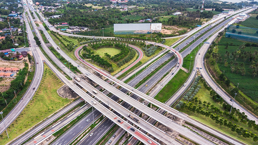 sobre a estrada da cidade de estrada - vista de olho de pássaro - d...