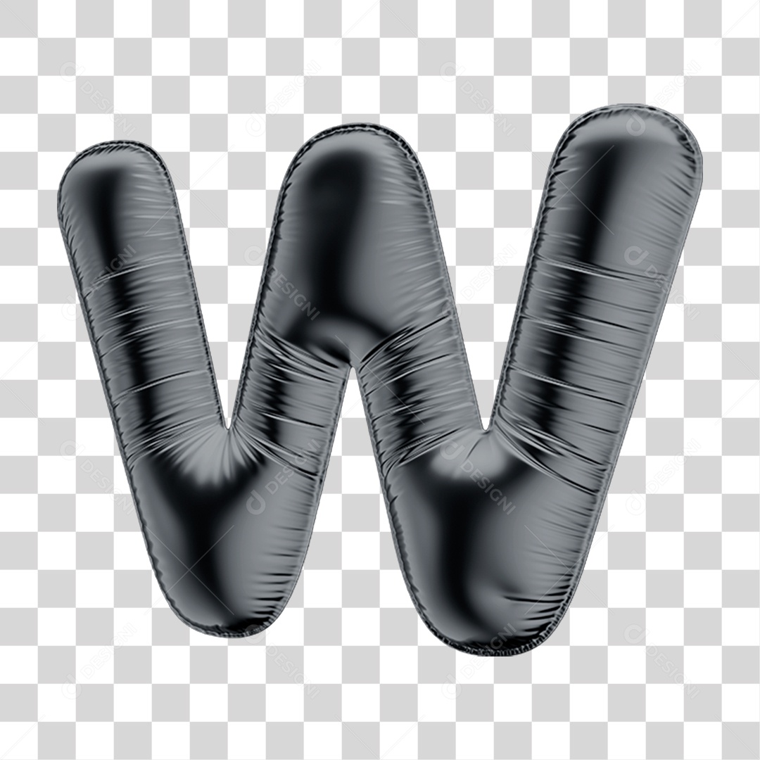 Alfabeto Letra W em Formato 3D de Balão Preto Black Friday PNG Transparente
