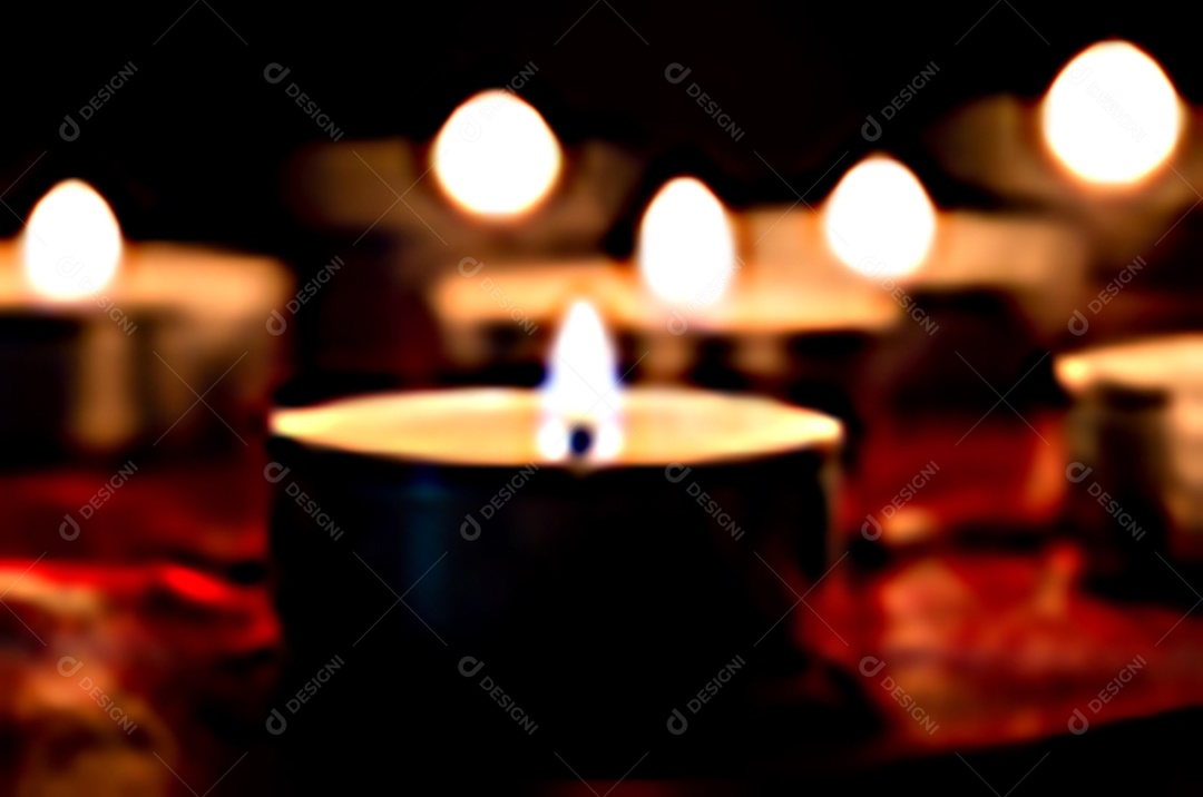 Luz de vela e fundo de tecido vermelho na escuridão