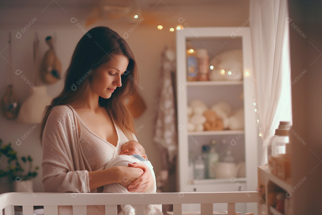 Mãe segurando seu bebê lindo recém nascido