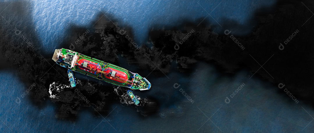 Vazamento de óleo do navio, poluição do derramamento de óleo poluiu...