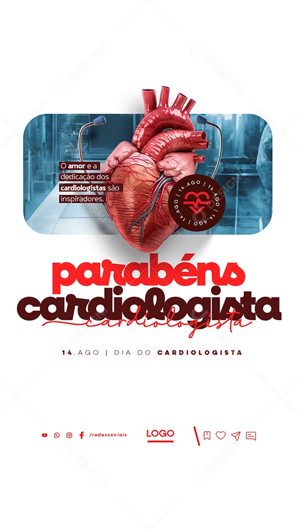 Story Dia Do Cardiologista 14 de Agosto Parabéns Social Media PSD Editável