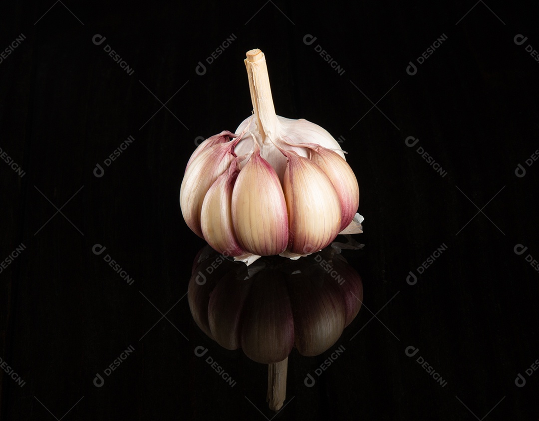 Closeup dente de alho e bulbo isolado em fundo branco..