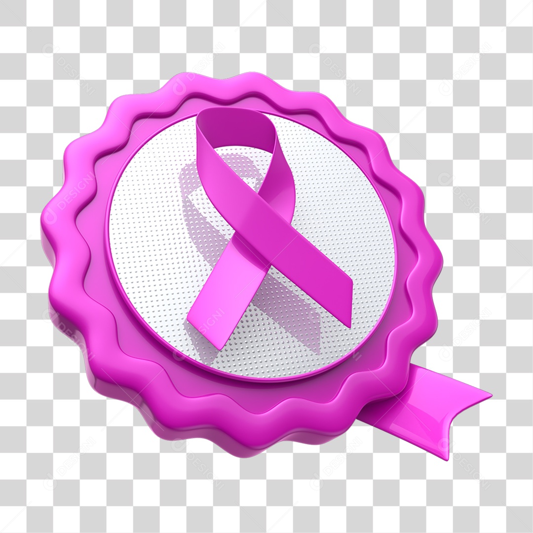 Selo 3D Caixa de Texto com Fita Rosa Outubro Rosa PNG Transparente