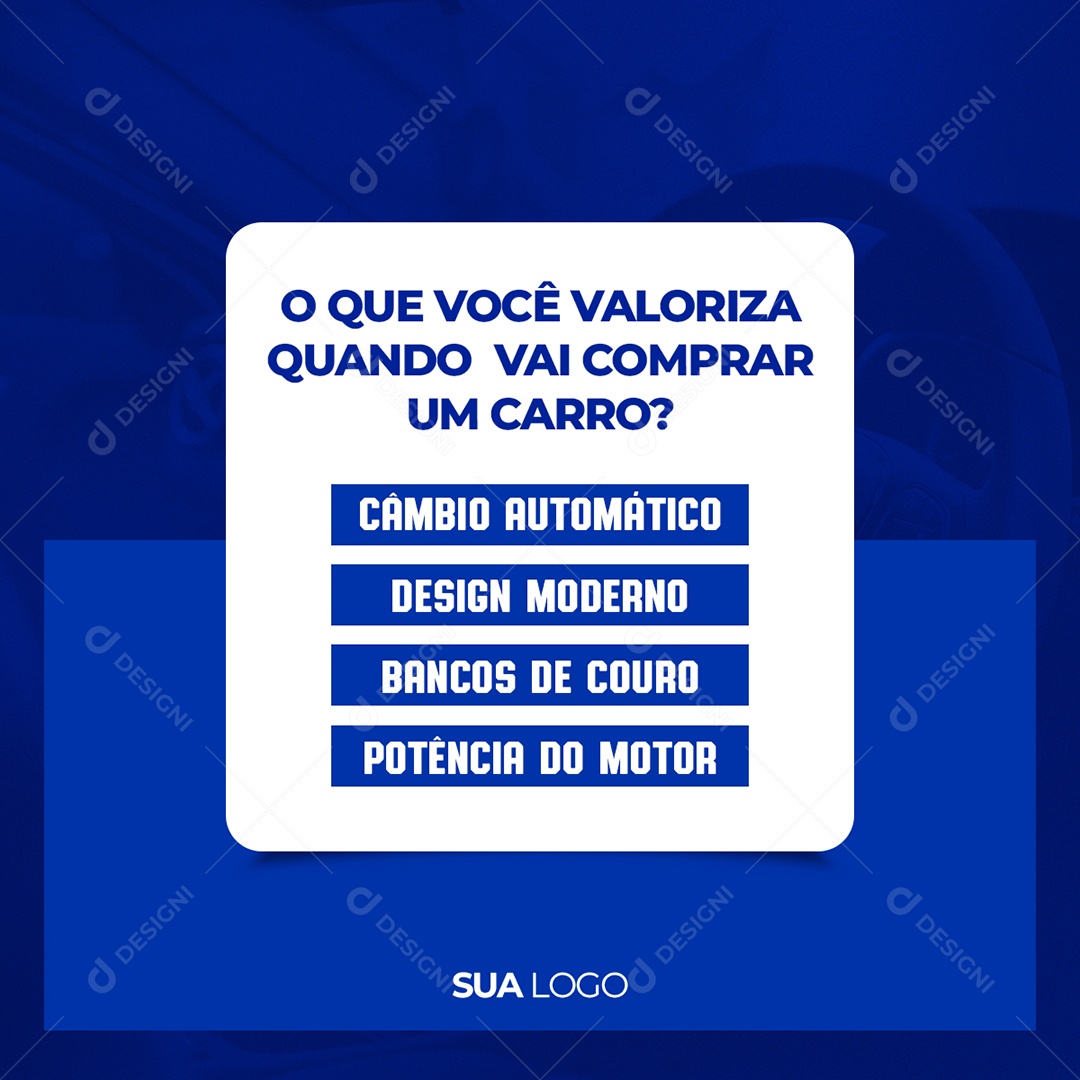 Concessionária o que Você Valoriza Quando vai Comprar um Carro Social Media PSD Editável