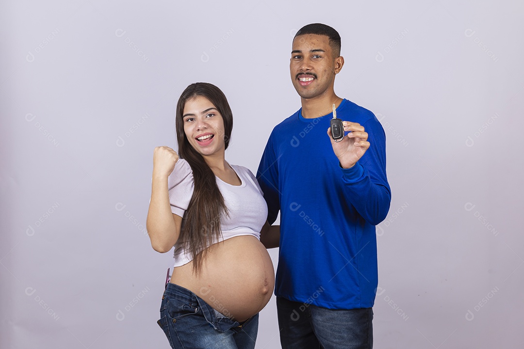 Mulher gravída ao lado de seu marido sobre fundo isolado