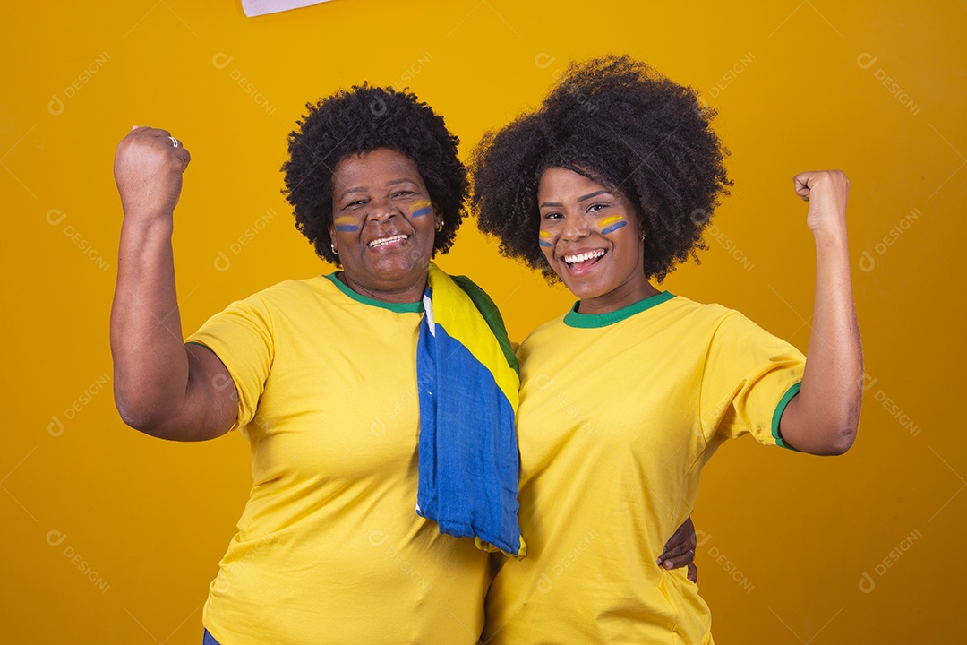 Lindas mulheres segurando bandeira do brasil sobre fundo isolado