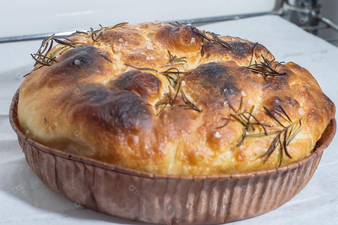 Pão italiano - tradicional dois pedaços de focaccia. A focaccia consiste em farinha, azeite, água, flor de sal, açúcar