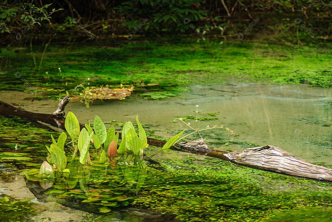 Nascente Águas Claras Meio Floresta Tropical Árvores Plantas Aquáticas Imagem JPG