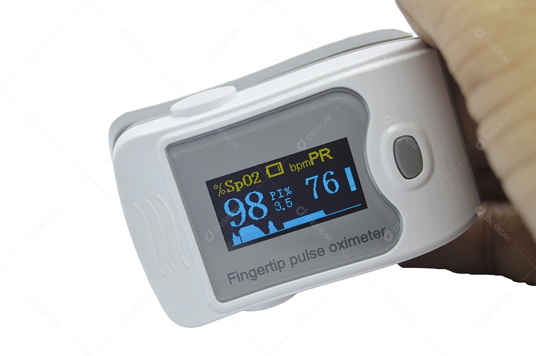 Imagem do monitor de oxigênio no sangue e batimentos cardíacos, dispositivo que deve ser acoplado. no tratamento de COVID-19 (com traçado de recorte)
