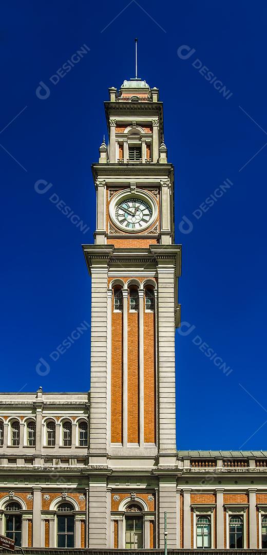 Vista da torre do relógio da estação Luz com céu azul