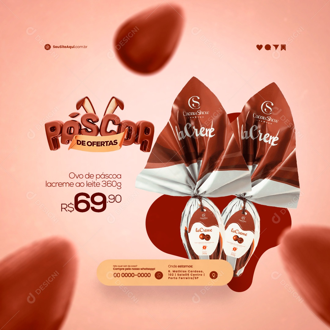 Páscoa de Ofertas Ovo de Páscoa Lacreme Leite R$ 69,90 Social Media PSD Editável