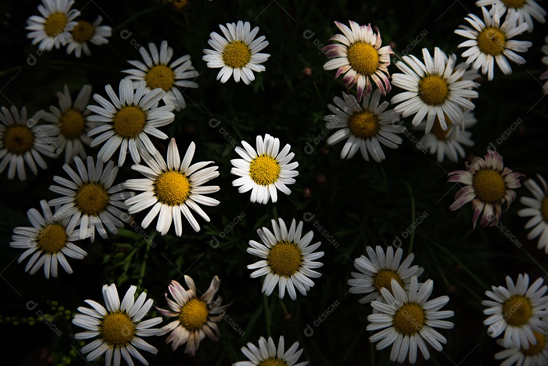 Margarida flores florescendo no jardim. Conceito de natureza ao ar livre. Tom baixo e alto contraste.