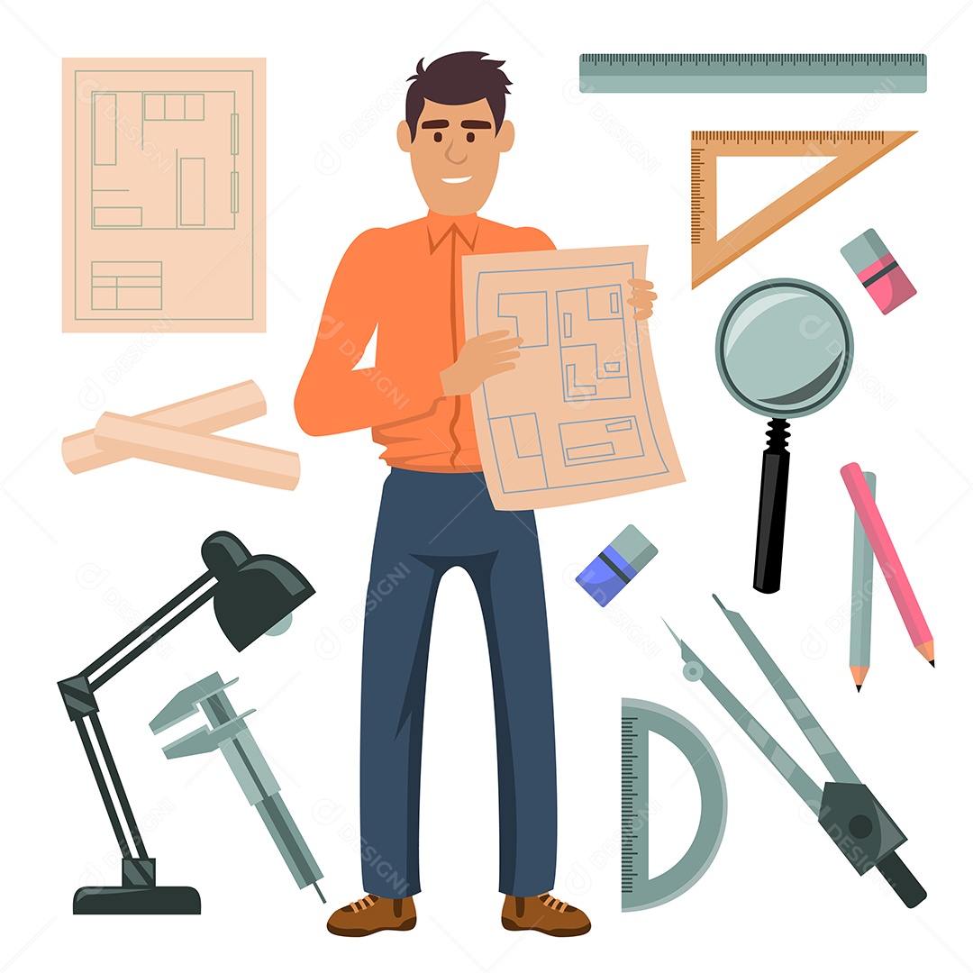 Desenho Vetorial De Personagem Arquiteto Ou Engenheiro Vetor AI + EPS
