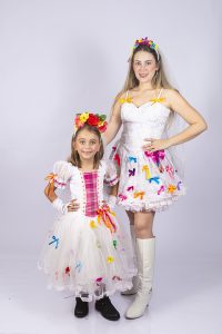 Jovem Mãe ao lado de sua filha sobre fundo isolado branco