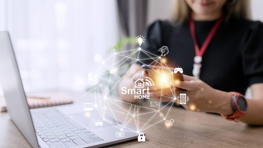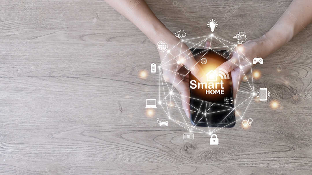 Conceito de automação residencial inteligente na tela virtual.