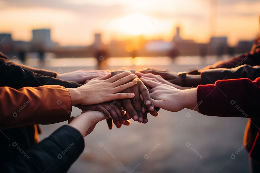 Trabalhando juntos o conceito de trabalho em equipe com as mãos unidas
