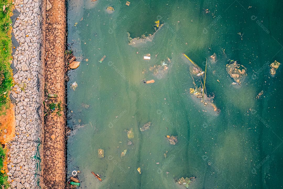 Vista de cima da Poluição e Rochas da Margem do Rio Pinheiros