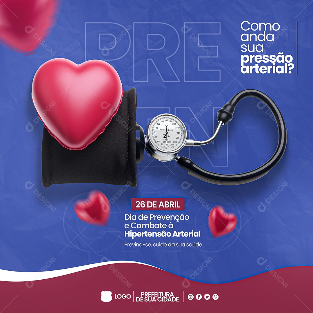 Dia de Prevenção e Combate á Hipertensão Arterial 26 de Abril Social Media PSD Editável