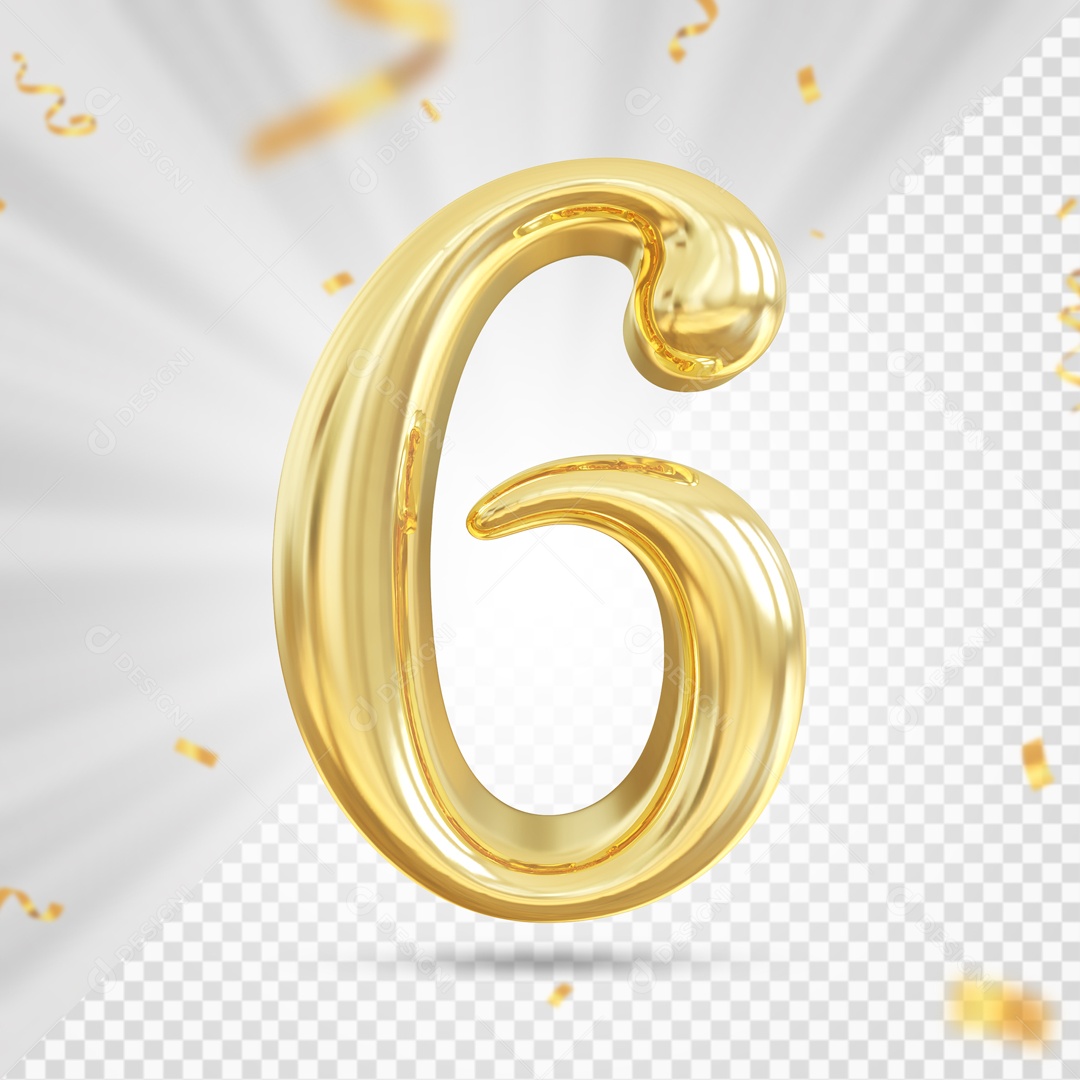 Balão De Festa Dourado Com Detalhes De Numero 6 Elemento 3D Para Co...