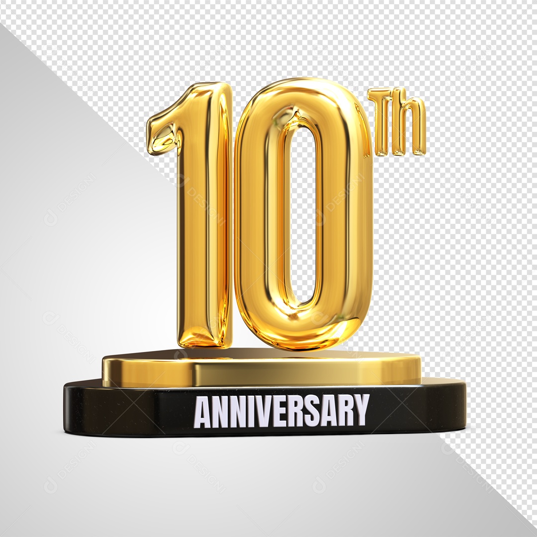 Podium De 10 Anos Aniversário Dourado Elemento 3D Para Composição PSD