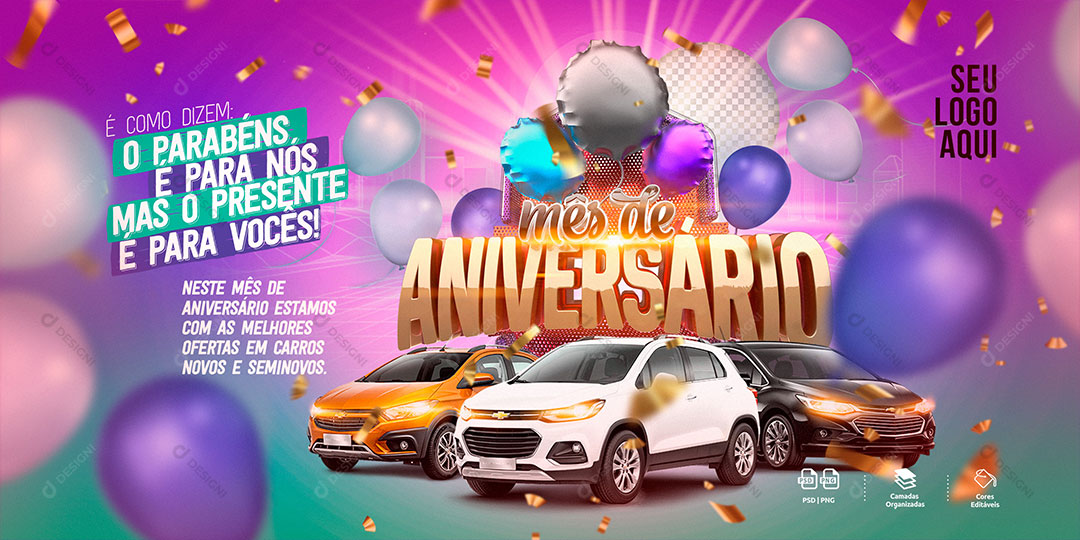 Banner Mês de Aniversário Veículos Social Media PSD Editável