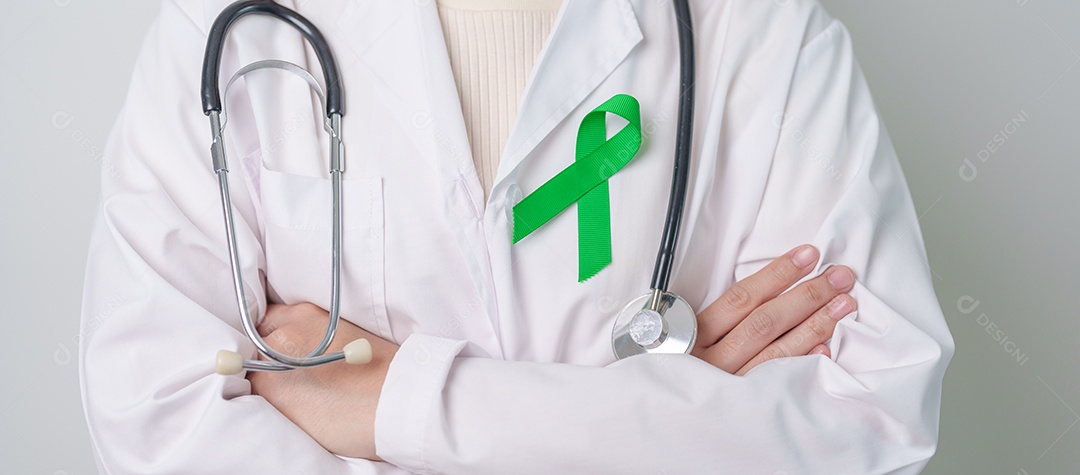 Médico com fita verde para o Dia Mundial da Saúde Mental