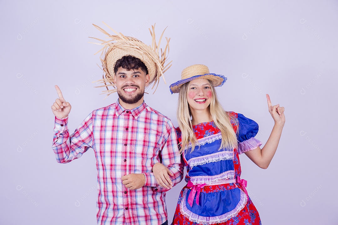 Lindo casal usando roupas típicas festa juninas sobre fundo isolado