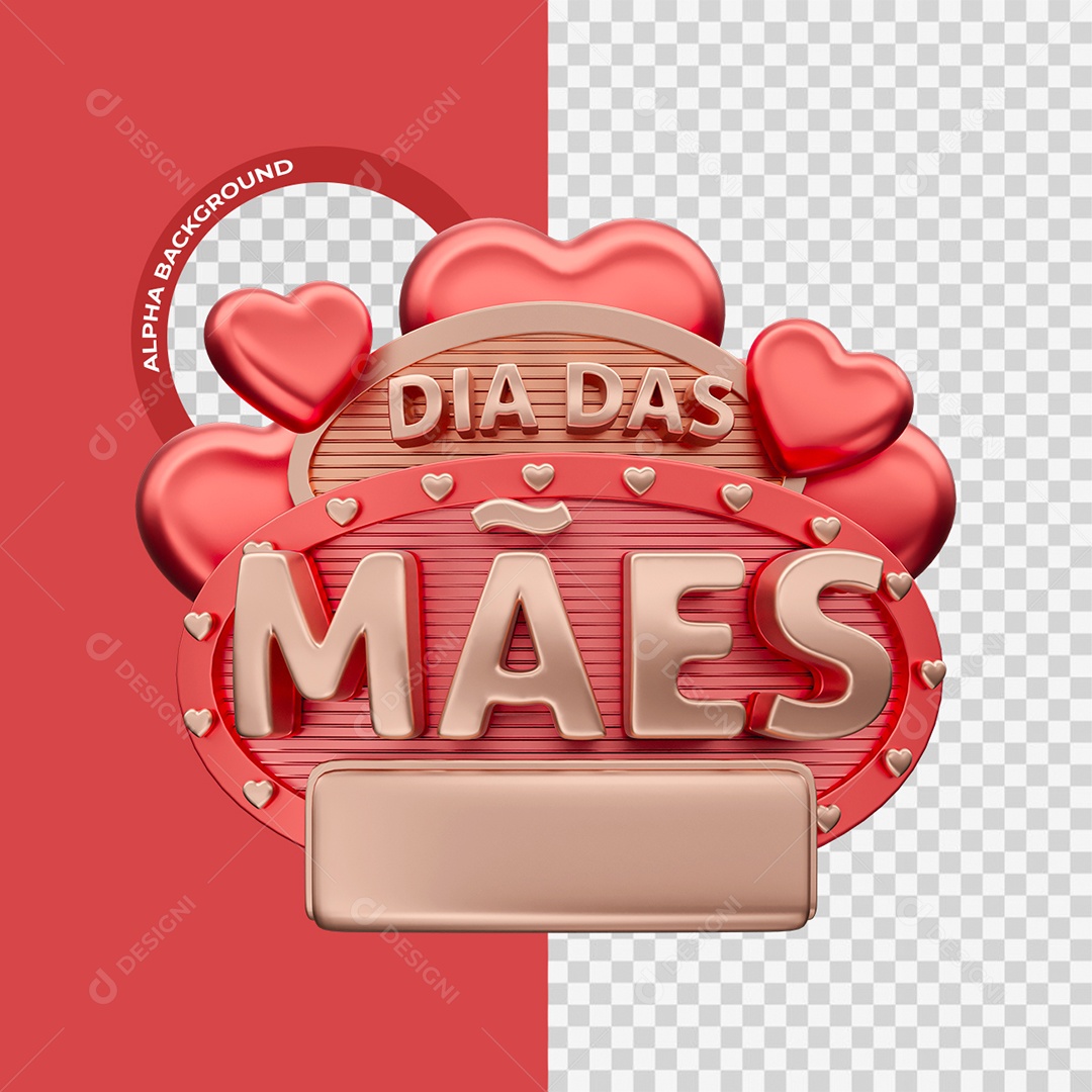 Dia das Mães Selo 3D Vermelho para Composição PSD