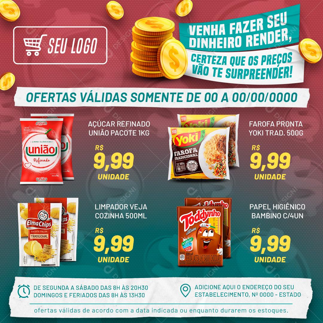 Encarte Venha Fazer O Seu Dinheiro Render Produtos Supermercado Social Media PSD Editável