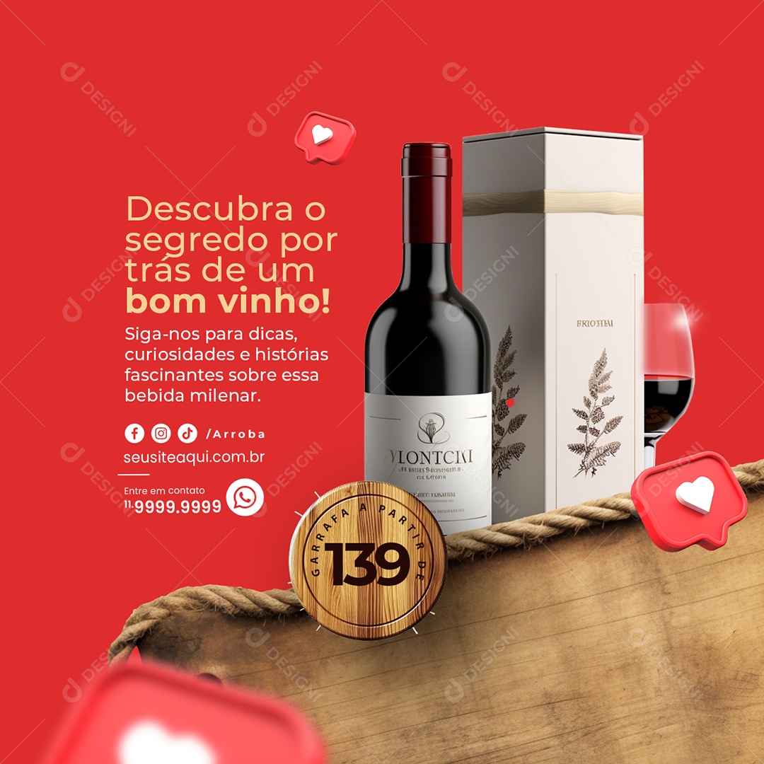 Adega Garrafa de Vinho Descubra o segredo por trás de um bom vinho Social Media PSD Editável