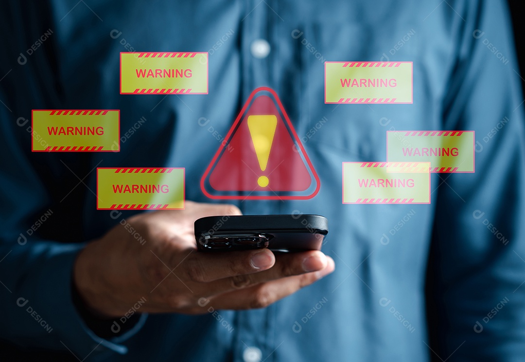 Sinal de advertência do sistema para erro de notificação e conceito...