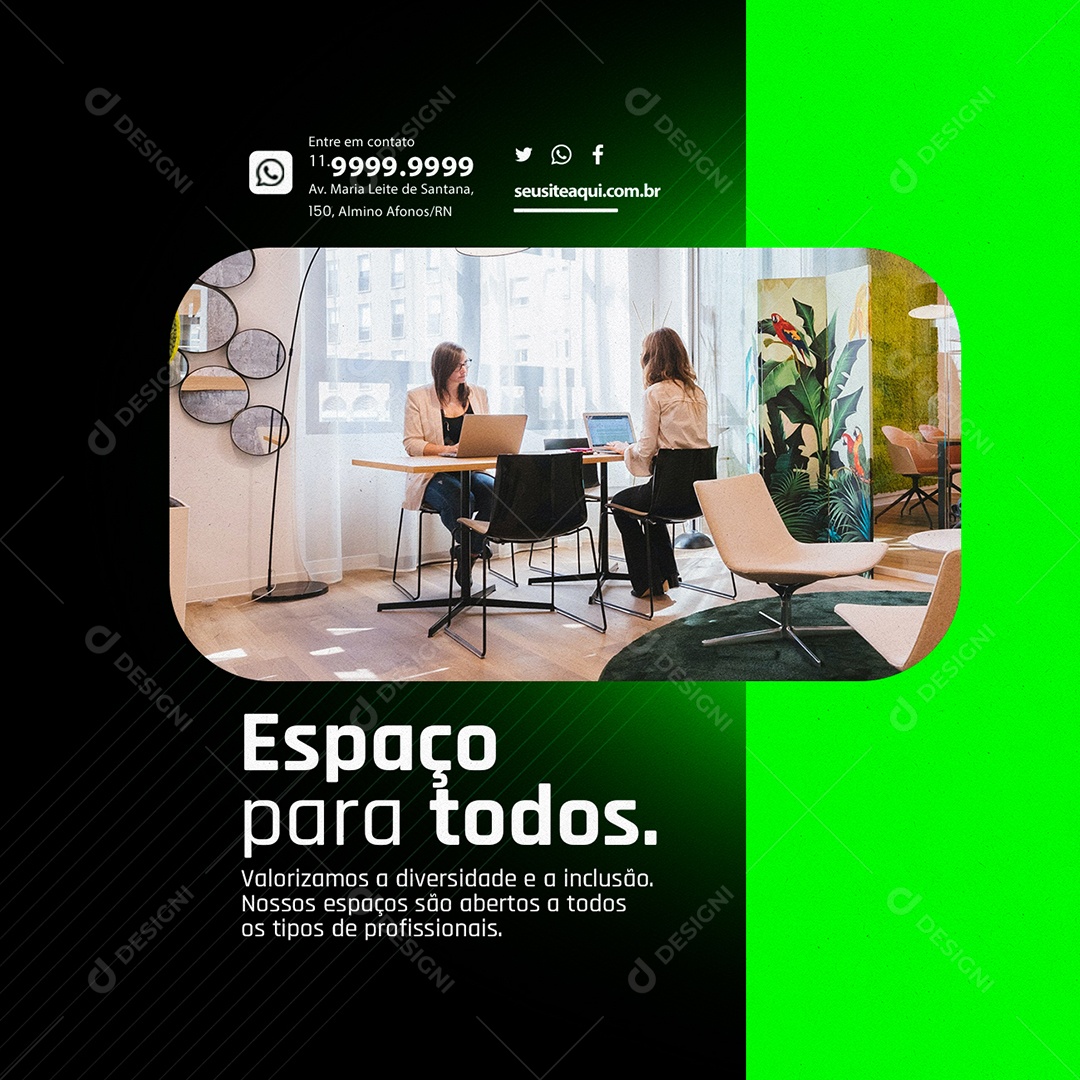 Coworking Espaço para Todos Valorizamos a Diversidade e a Inclusão Social Media PSD Editável
