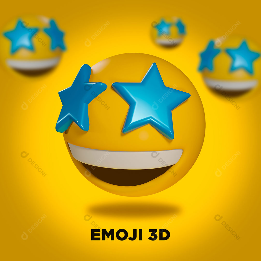 Emoji 3D Sorrindo Com Estrelas Para Composição PSD