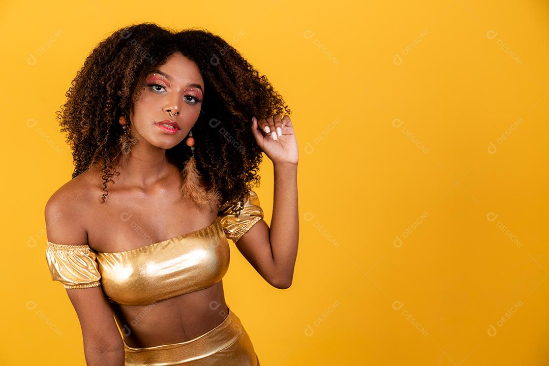 Linda mulher afro vestida para o carnaval.