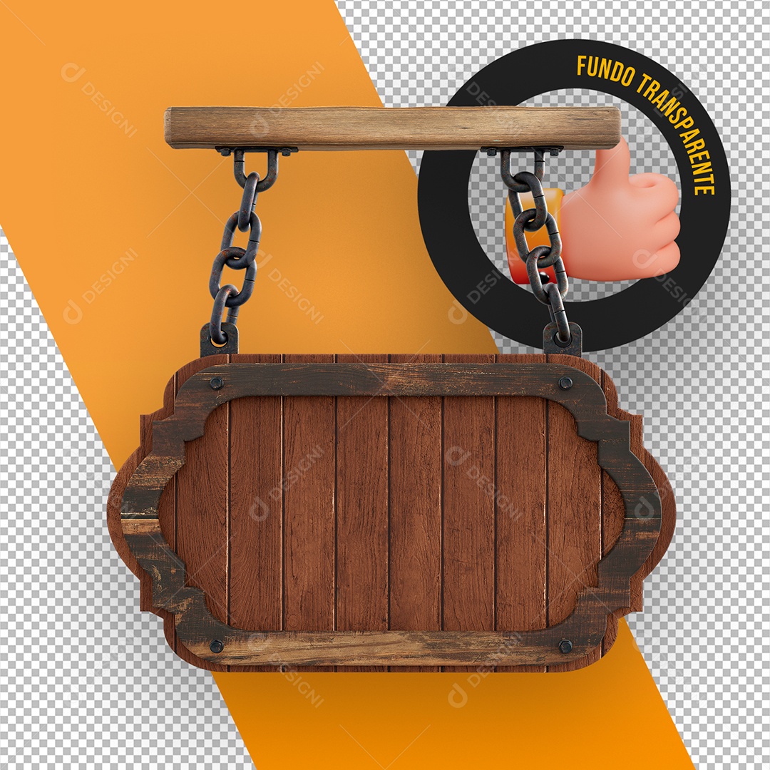 Elemento 3D Placa de Madeira Despendurada com Correntes para Compos...