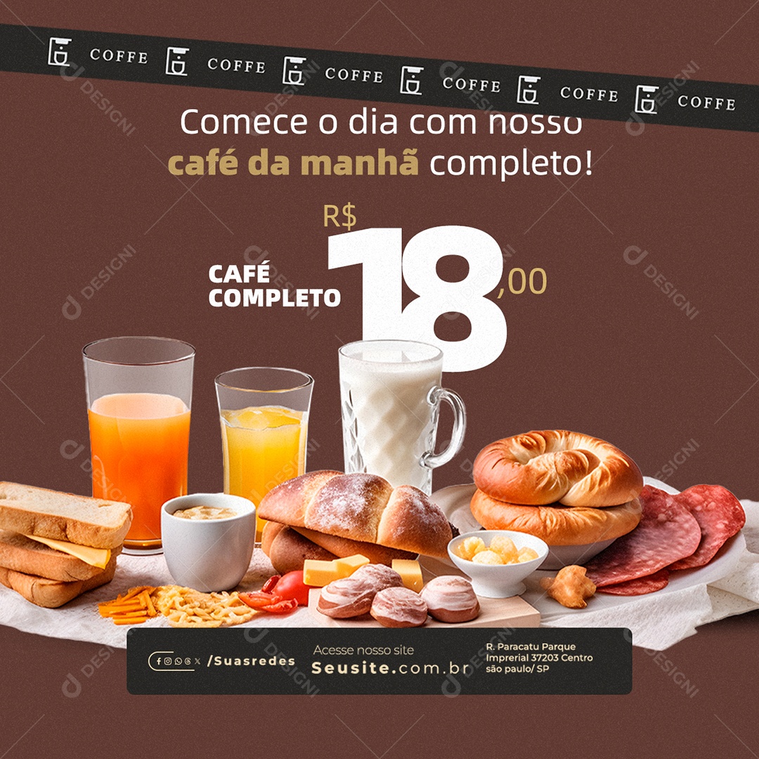 Cafeteria Comece o Dia com Nosso Café da Manhã Social Media PSD Edi...