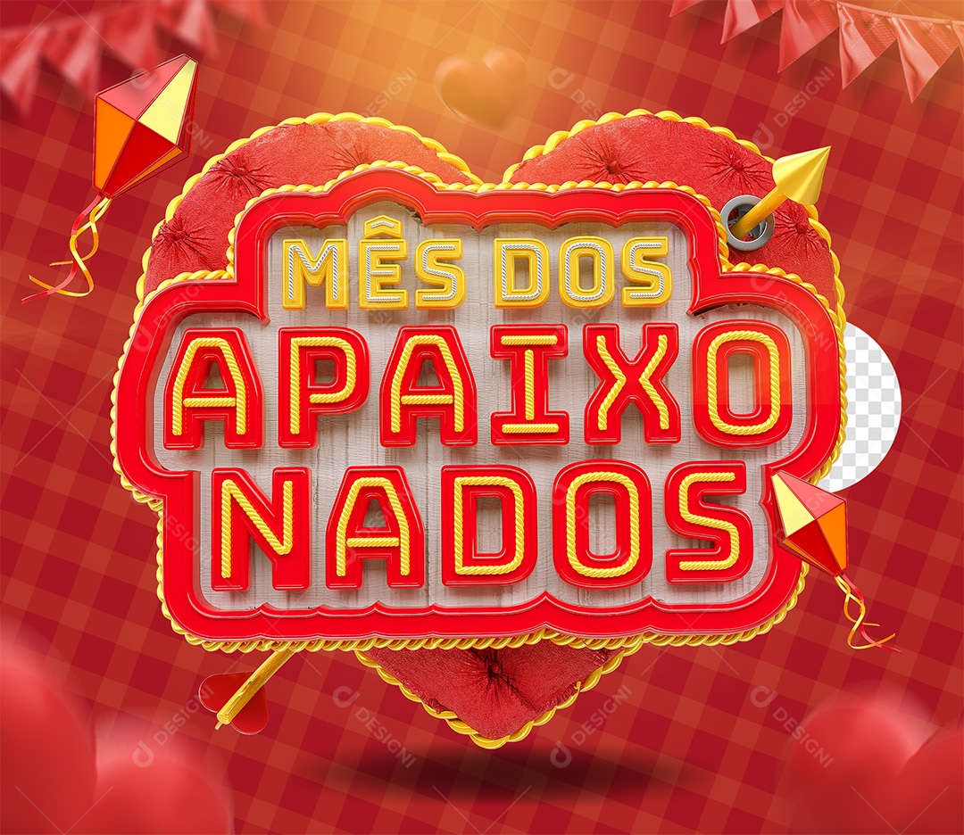 Selo 3D Mês dos Apaixonados Vermelho e Amarelo para Composição PSD
