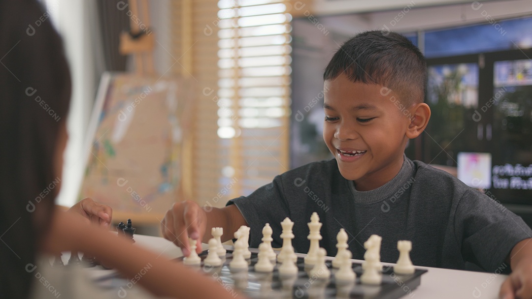 Duas crianças se divertindo jogando xadrez