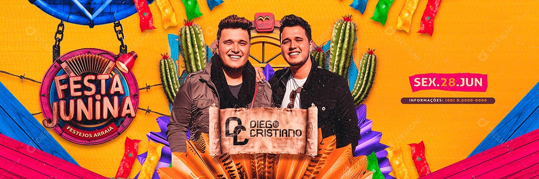 Carrossel Flyer Festa Junina Festejos Arraiá Diego e Cristiano Social Media PSD Editável