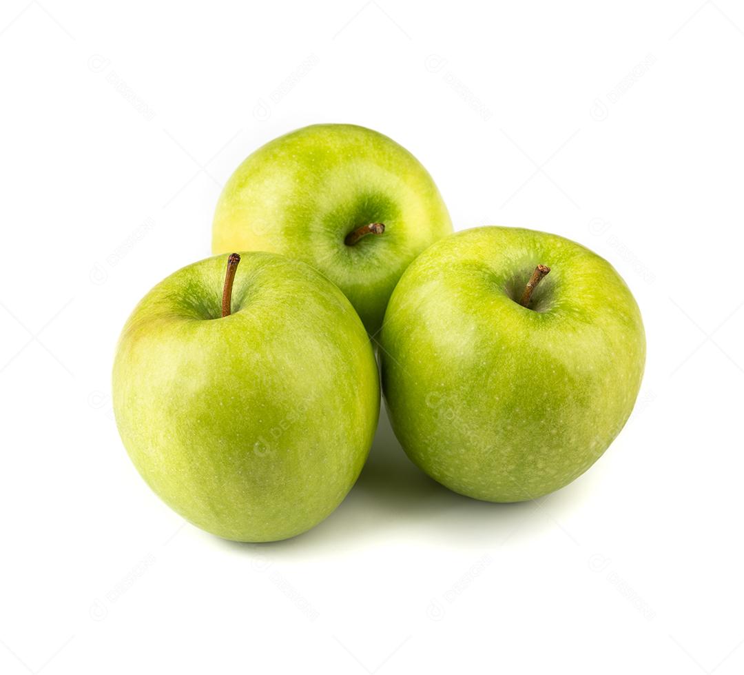 Um grupo de maçãs verdes isoladas sobre fundo branco