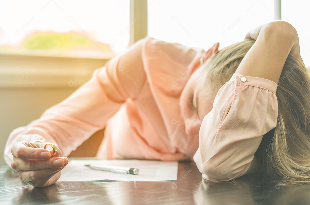 Grande conceito de divórcio, fim de relacionamento, jovem triste,