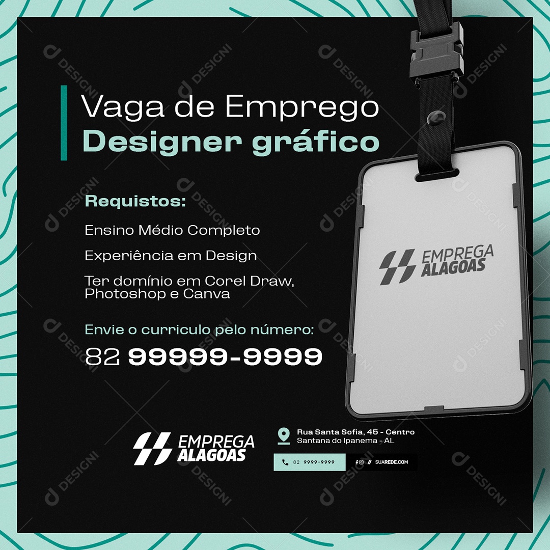 Vaga de Emprego Designer Gráfico Social Media PSD Editável