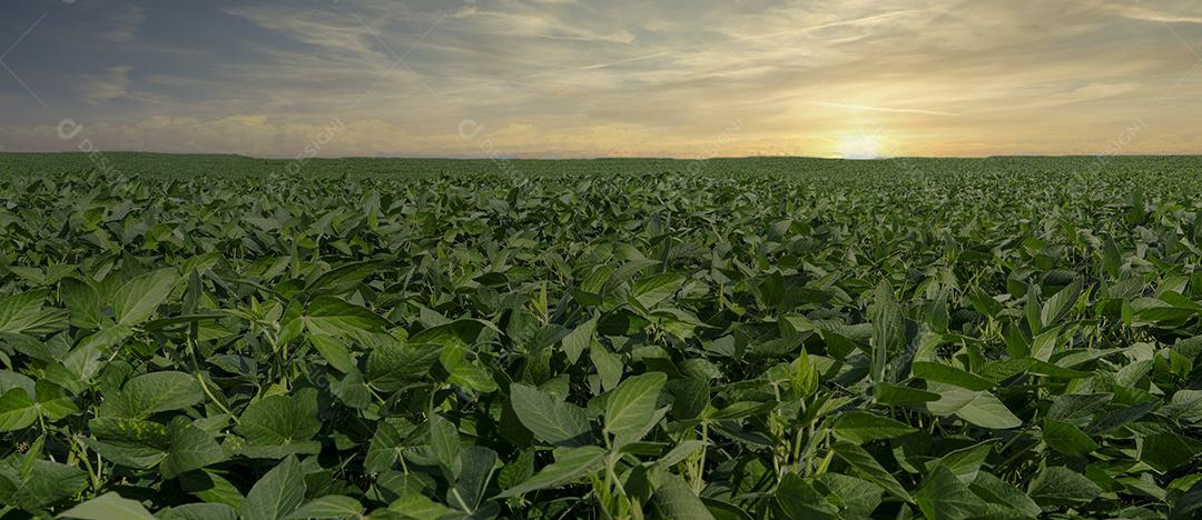 Fotos Plantação de Soja Agrícola Céu Azul Planta de Soja Verde Cres...