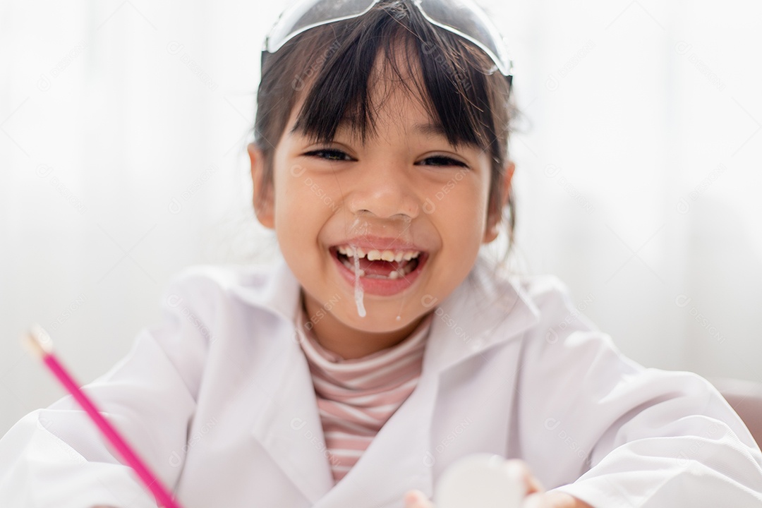 Menina asiática. criança tem corrimento nasal com ranho claro, vírus