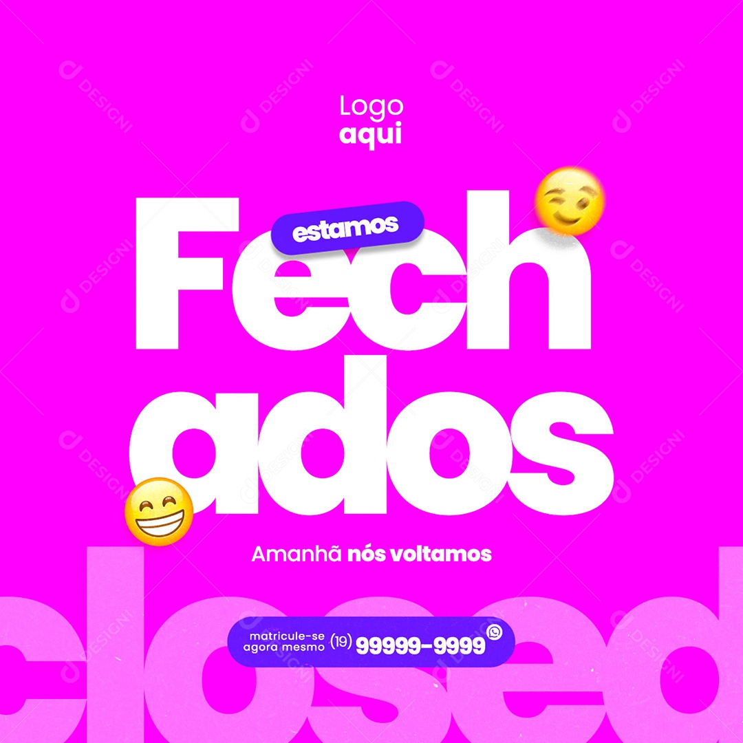 Estamos Fechados Amanhã Nós Voltamos Escola de Idiomas Social Media PSD Editável
