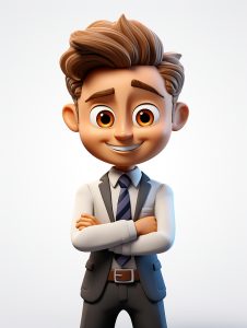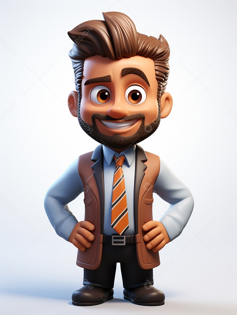 Homem de negócios 3d feliz cruzou os braços em 3d transparente