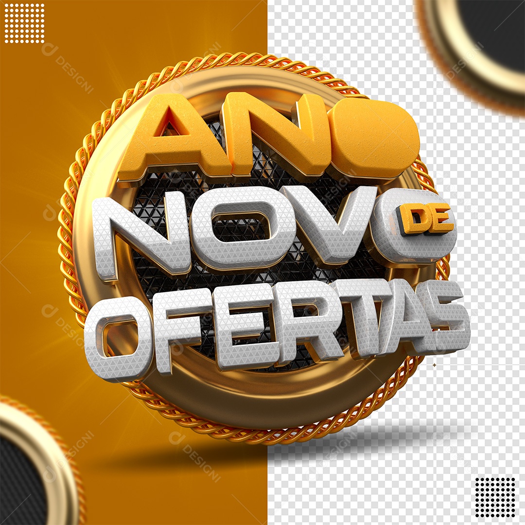 Ano Novo de Ofertas Selo 3D Amarelo e Branco para Composição PSD